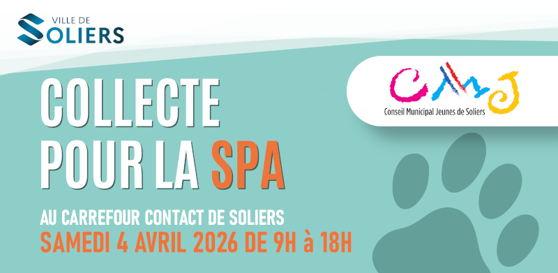 Le Conseil Municipal Jeunes organise une collecte de nourriture, jouets, matériel et produit d’hygiène au profit de la Société Protectrice des Animaux. Samedi 4 avril 2026, de 9h à 12h au Carrefour Contact de Soliers.