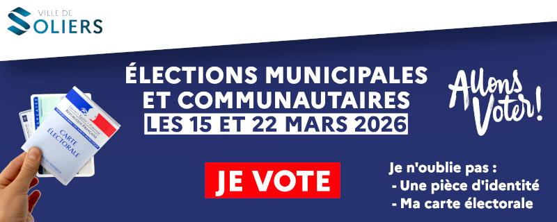 Les 15 mars, le premier tour des élections municipales et communautaires aura lieu de 8h à 18h, à la Salle Polyvalente de Soliers (bureaux de vote 1 & 2)